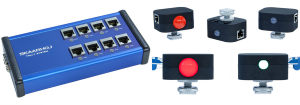 The Tally Box System handles up to 8 tally lights, connecting either directly via the box, or by daisy chain running from tally light to tally light.